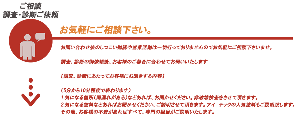 調査、診断の御依頼後、お客様のご都合に合わせてお伺いいたします